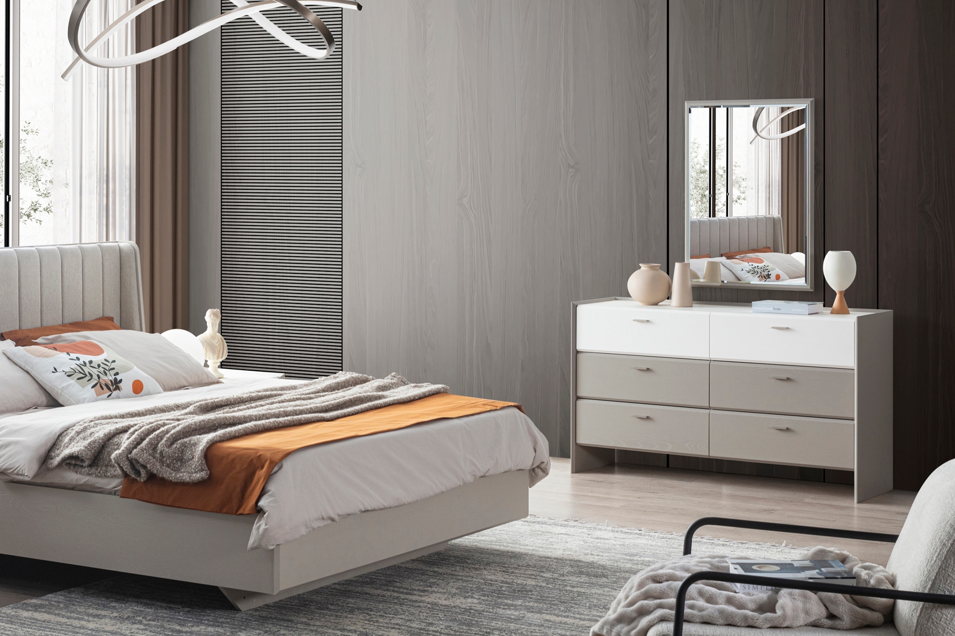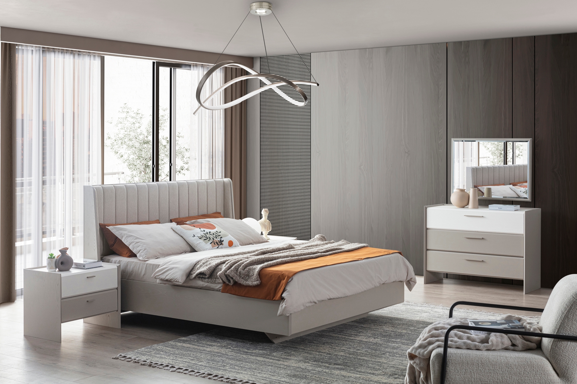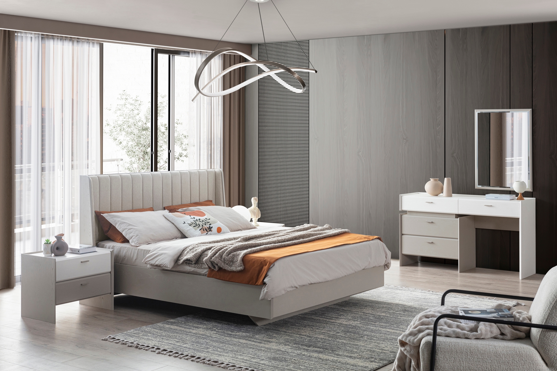 Karyola: Standart takımda bazasızdır, 160x200 cm yatak ölçüsüne uygundur (Opsiyonel olarak bazalı tercih edilebilir).