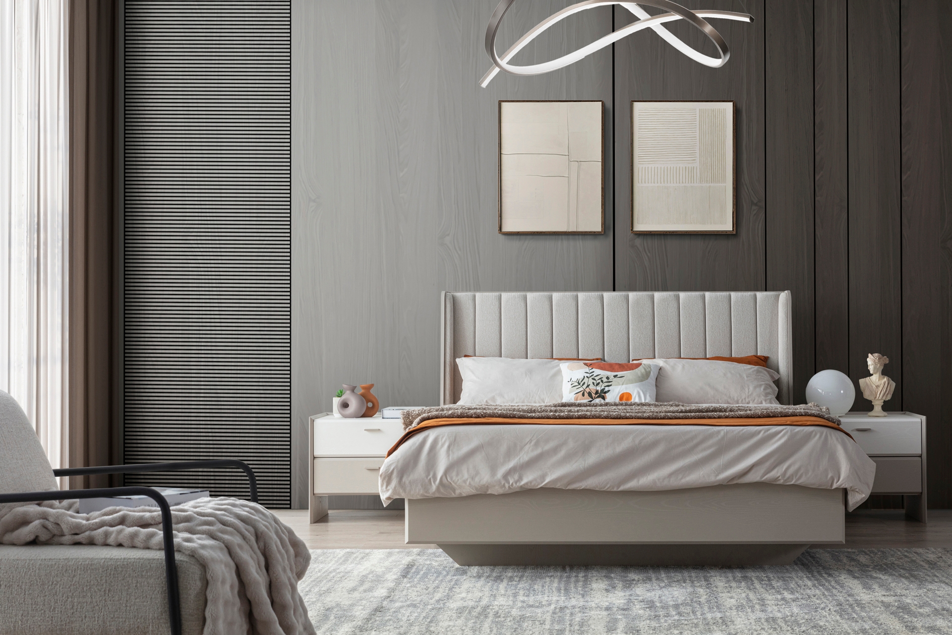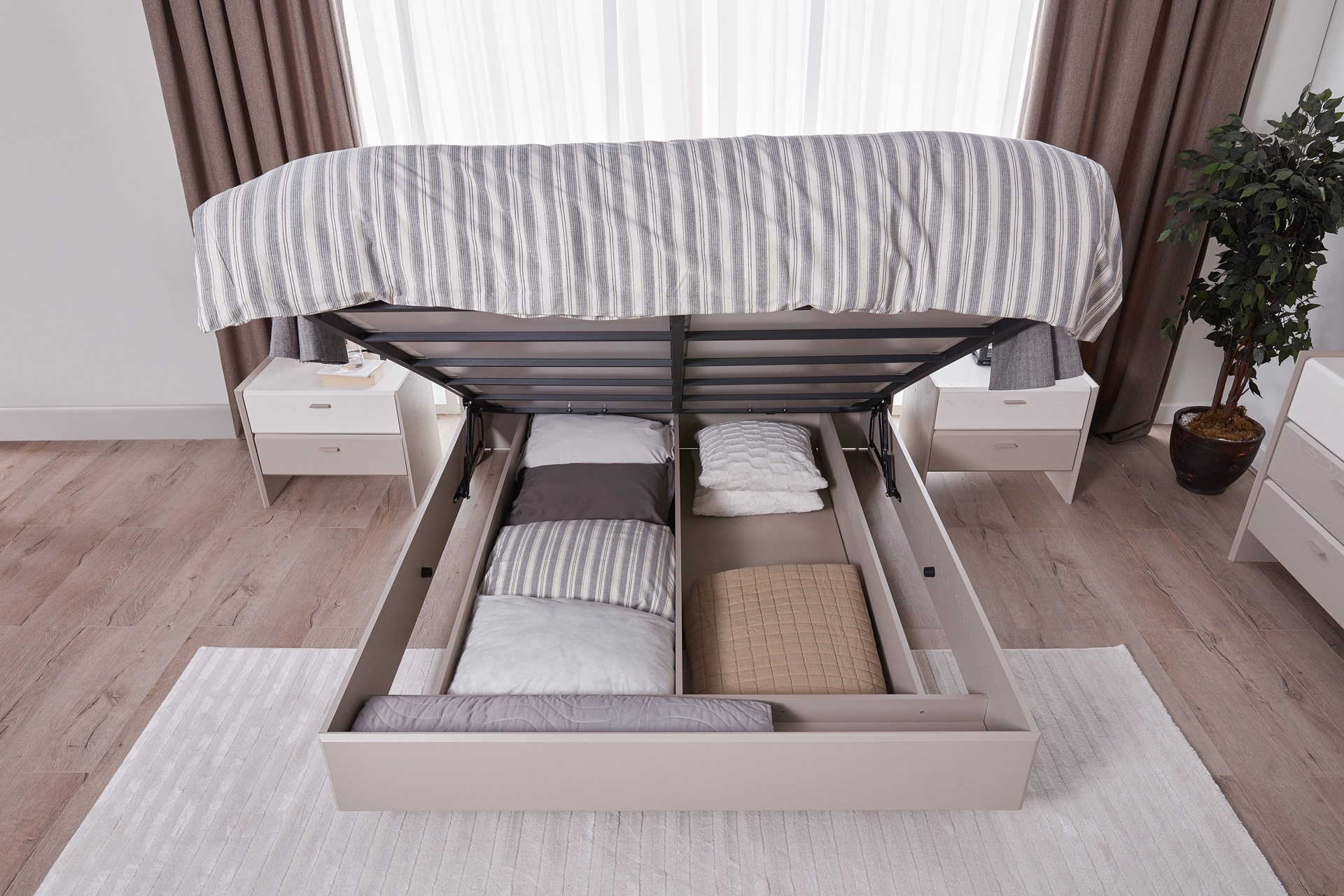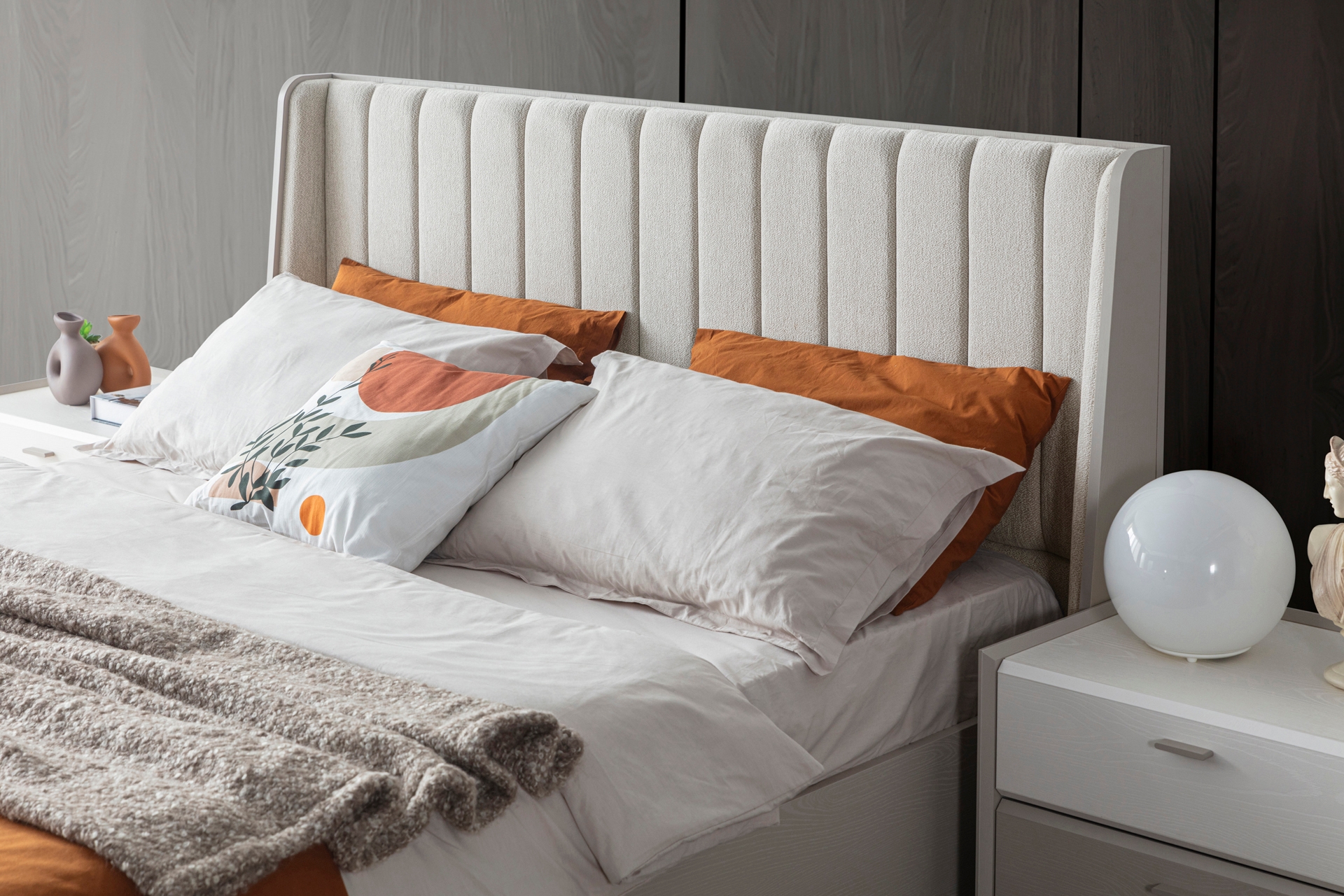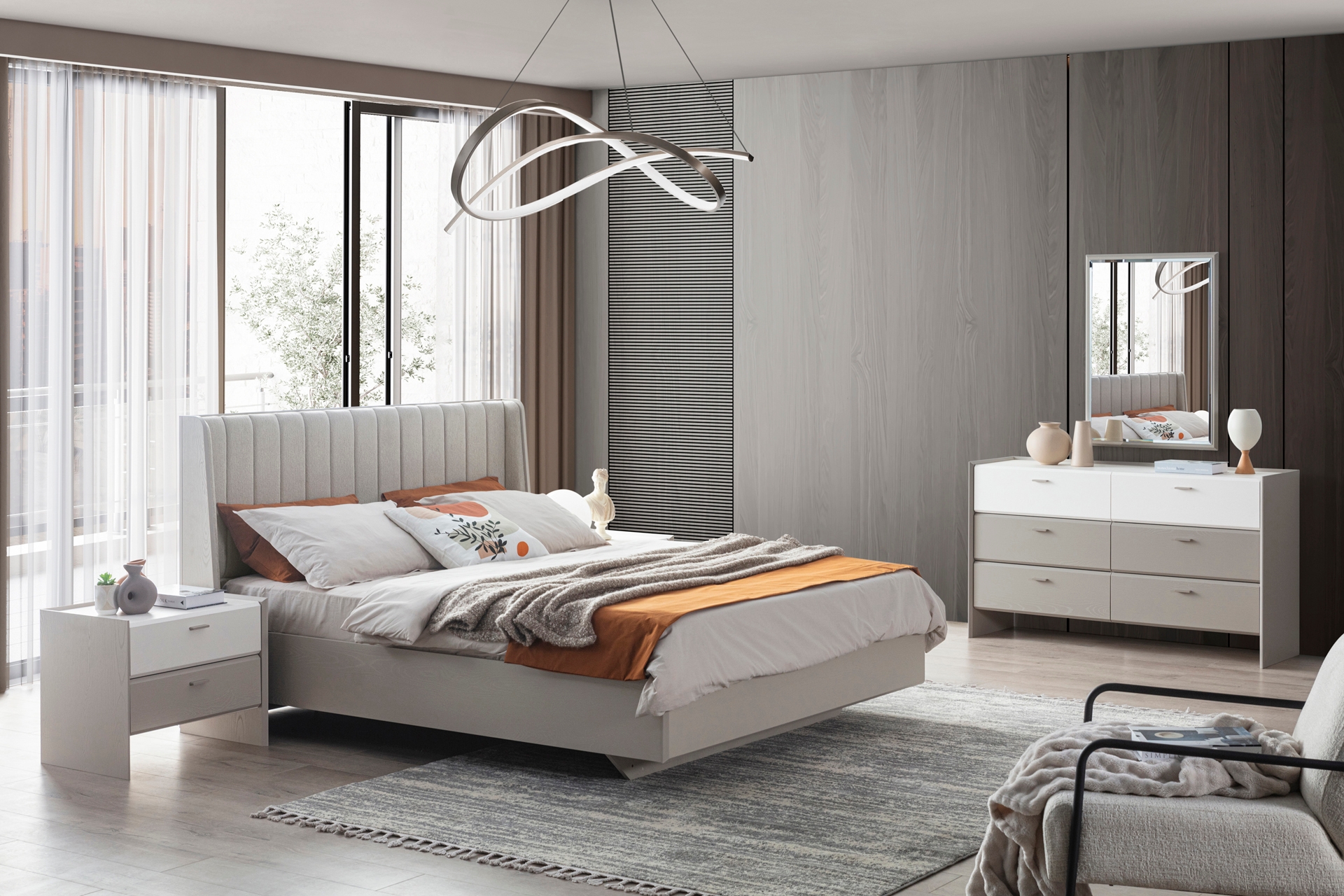 Karyola: Standart takımda bazasızdır, 160x200 cm yatak ölçüsüne uygundur (Opsiyonel olarak bazalı tercih edilebilir).