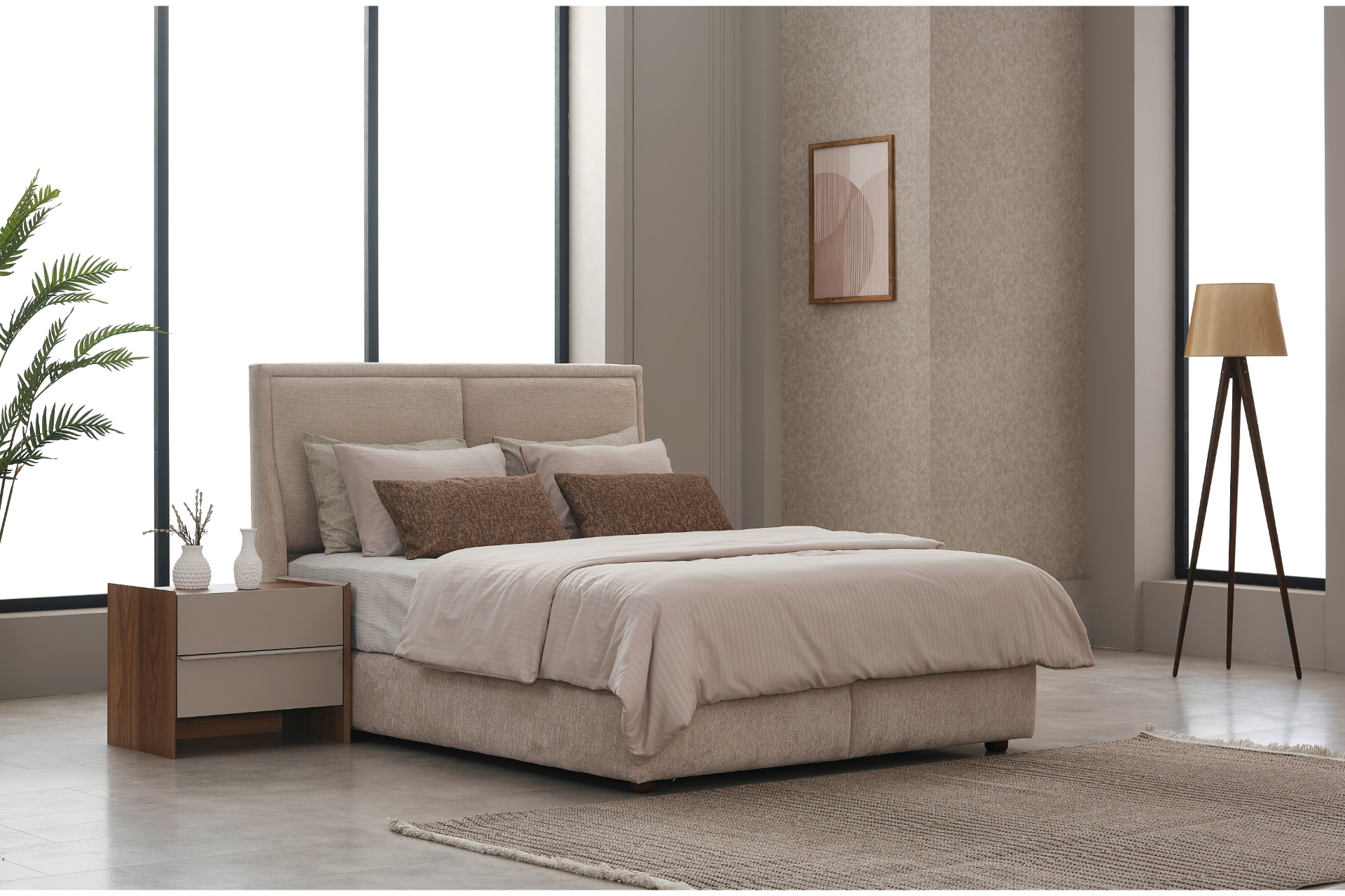 Bazalı Karyola ve Başlık Genişlik: 160 cm | Yükseklik: 135 cm | Derinlik: 200 cm (Uyumlu Yatak Ölçüsü: 160x200 cm)